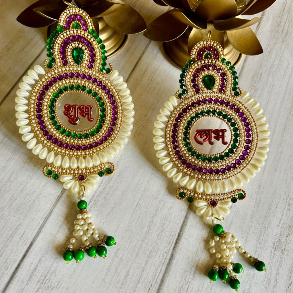 Green Kundan rangoli with hanging